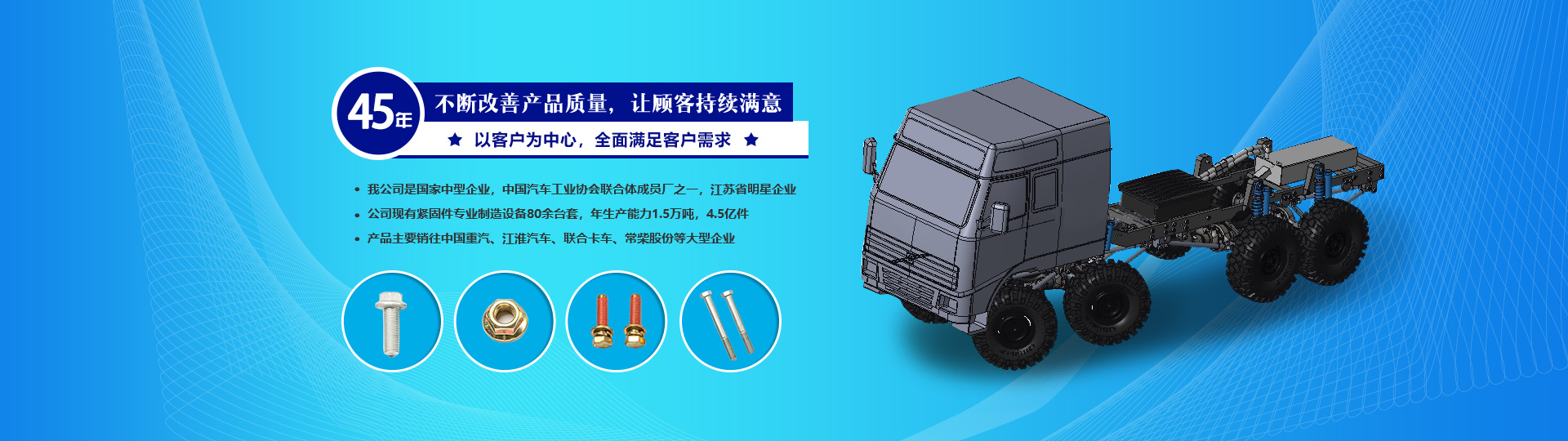 鎮(zhèn)江市標(biāo)力緊固件有限公司是國家中型企業(yè),中國汽車工業(yè)協(xié)會(huì)聯(lián)合體成員廠之一,江蘇省明星企業(yè),位于江蘇省鎮(zhèn)江市諫壁鎮(zhèn)。 目前專業(yè)生產(chǎn)各類型螺栓、螺母、鉚釘、銷軸、墊圈及各類非標(biāo)準(zhǔn)件產(chǎn)品,產(chǎn)品注冊商標(biāo)為“BL”牌。